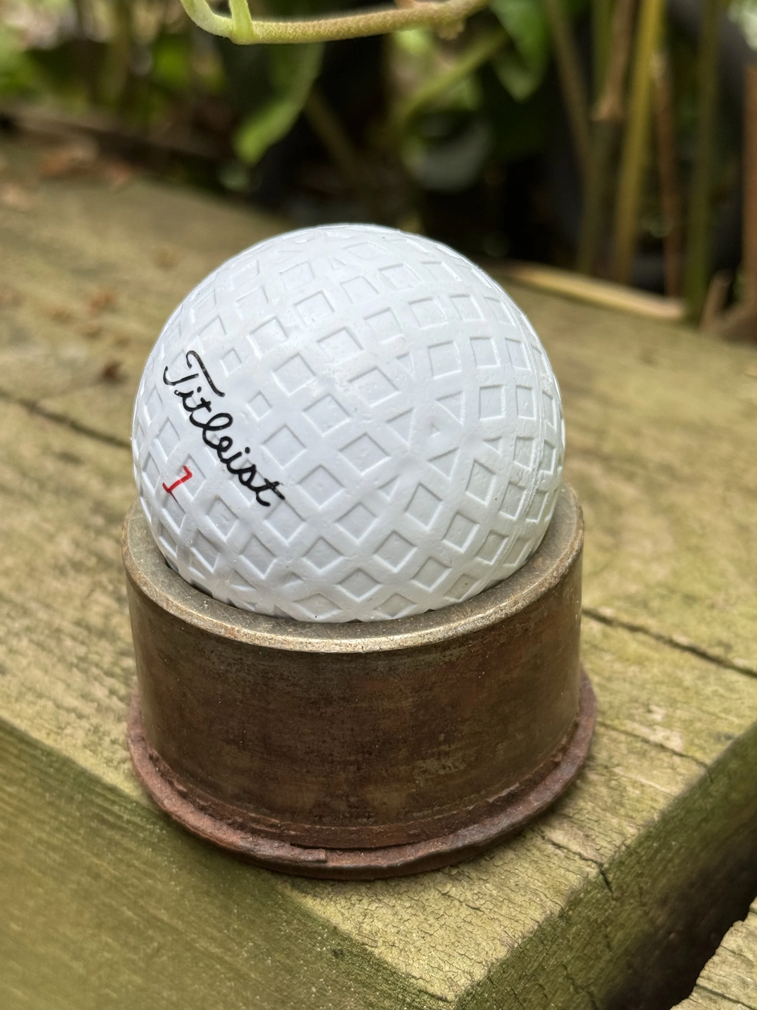 The quintessential golf ball pattern during the golden age of hickory golf was the mesh pattern. Most of the golf balls produced during the 1920s and 1930s featured mesh patterns until mass production of the more aerodynamic dimple pattern began in the 1940s.I’ve been making my own mesh-pattern balls ever since I lucked into finding an authentic, 1920s-era cast-iron mold on eBay a few years ago. One of the first videos I posted on the Hickory Hacker YouTube channel was a tutorial on how I use that mold and a toaster oven to remold the cover of my Titleist TruFeel balls. Since then, I’ve refined the process and have been very pleased with the consistency and efficiency of remolding TruFeel balls versus any others. I’ve also discovered that the Titleist logo/number and mesh pattern combo looks really sharp and is a true conversation starter when I tee it up, no matter what clubs I’m playing.