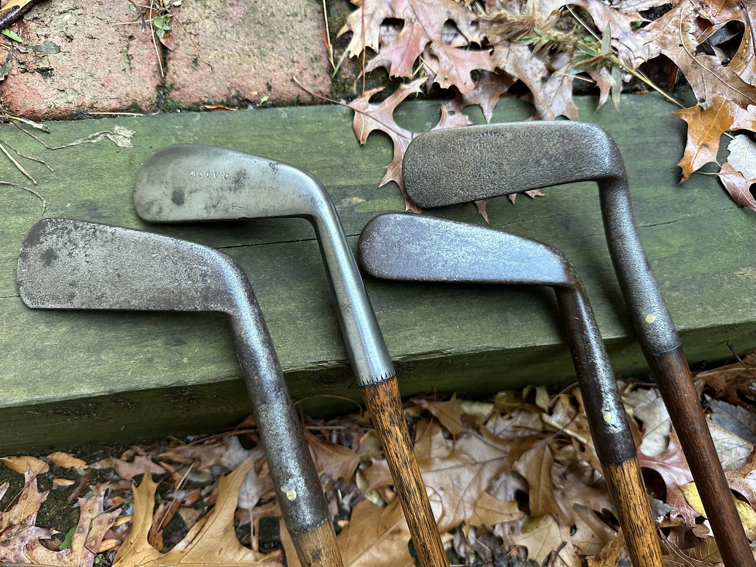 If you’re looking for an affordable and authentic way to play gutty golf, look no further than this four-club set of irons made in the late 1890s and early 1900s and fully refurbished for gutty golf play.